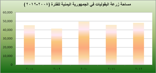 جدول (1) مساحة زراعة البقوليات في الجمهورية اليمنية للفترة (2008-2012) هكتار