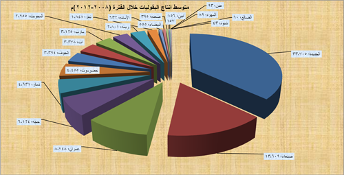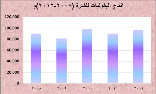 جدول (3) يوضح إنتاج البقوليات في الجمهورية اليمنية للفترة 2008-2012 (طن)