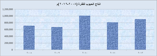 جدول(3) يوضح إنتاج الحبوب في الجمهورية اليمنية للفترة (2008-2012)(طن)