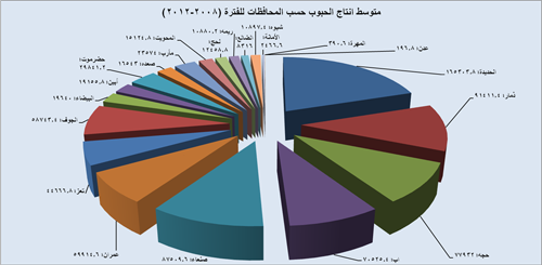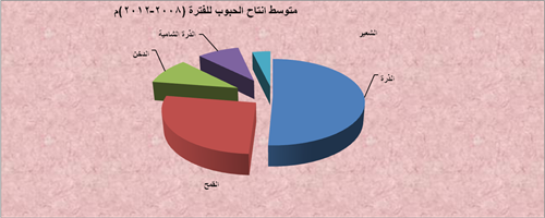 وفيما يتعلق بالإنتاجية نلاحظ أن متوسط إنتاج الهكتار السنوي من الحبوب خلال نفس الفترة بلغ(1.0) طن/للهكتار الواحد، ومن الجدول نلاحظ تحسن طفيف في إنتاجية الهكتار الواحد من الحبوب وهذا راجع إلى إدخال بعض المستلزمات الحديثة في الإنتاج مثل الأسمدة والبذور المحسنة .جدول(3).