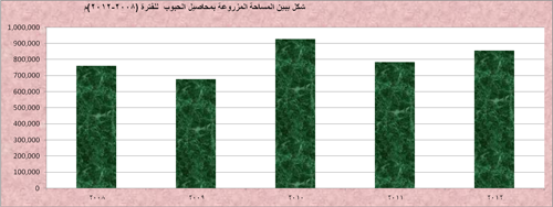 جدول (1) يوضح تطور مساحة زراعة الحبوب في الجمهورية اليمنية للفترة 2008-2012م (هكتار)