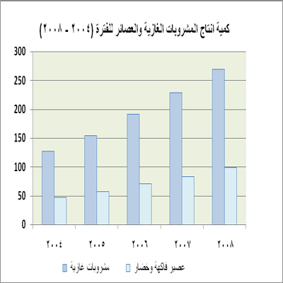 ويوضح الجدول التالي كمية المشروبات الغازية والعصائر المنتجة في اليمن للفترة (2004 – 2008) – (مليون لتر)