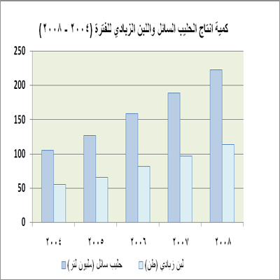 ويوضح الجدول التالي كمية الحليب والألبان المنتجة في اليمن للفترة (2004 – 2008)