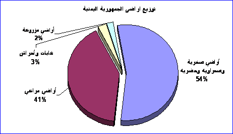 أولاً - الأرض : تعد الأرض من أهم محددات التوسع في القطاع الزراعي ، وأن حجم الإنتاج يتحدد بالمساحات المزروعة فعلاً خلال موسم معين أو سنة معينة .فإنه من خلال البيانات تبين أن إجمالي الأراضي المزروعة في الجمهورية اليمنية بلغت 1484852هكتار.