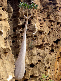 ينمو على الجروف التي يصعب على الماعز الوصول اليها، ويمكن ان تصل احجام سيقانها المنتفخة الى مترين طولاً وعرضاً وهي من اقرباء الثين.