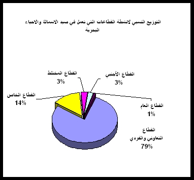 يتكون النشاط الإنتاجي للاصطياد الساحلي التقليدي من التعاونيات والجمعيات السمكية والصيادين الأفراد ويبلغ عدد التعاونيات السمكية (128) تعاونية وجمعية سمكية على طول الشريط الساحلي للجمهورية وتمتلك حوالي20787)) قارب خشبي وفيبرجلاس وعبري حتى عام 2007 م ، أما الاصطياد الصناعي/ التجاري فيمارس نشاطه في أعماق وأعالي البحار وتمثله الشركات المختلفة في القطاعين: الأجنبي والخاص والذي يصطاد في المناطق البعيدة من الساحل . ويمتلك القوارب الكبيرة المخصصة لاصطياد الأسماك القاعية والحبَّار والشروخ .