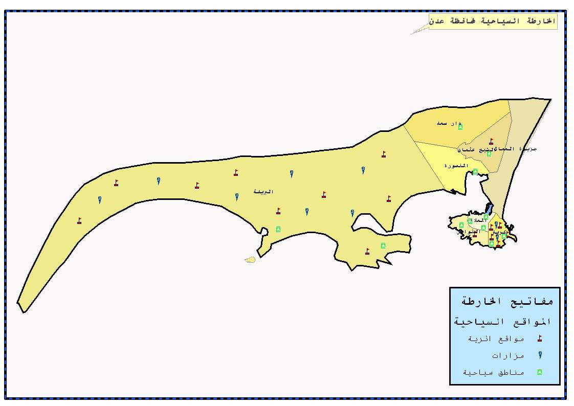 تتعدد المعالم الأثرية والتاريخية في المحافظة وذلك لما مرت به المنطقة من أحداث عبر مراحل التاريخ ،وأهم المواقع الأثرية والمعالم التاريخية في محافظة عدن هي :